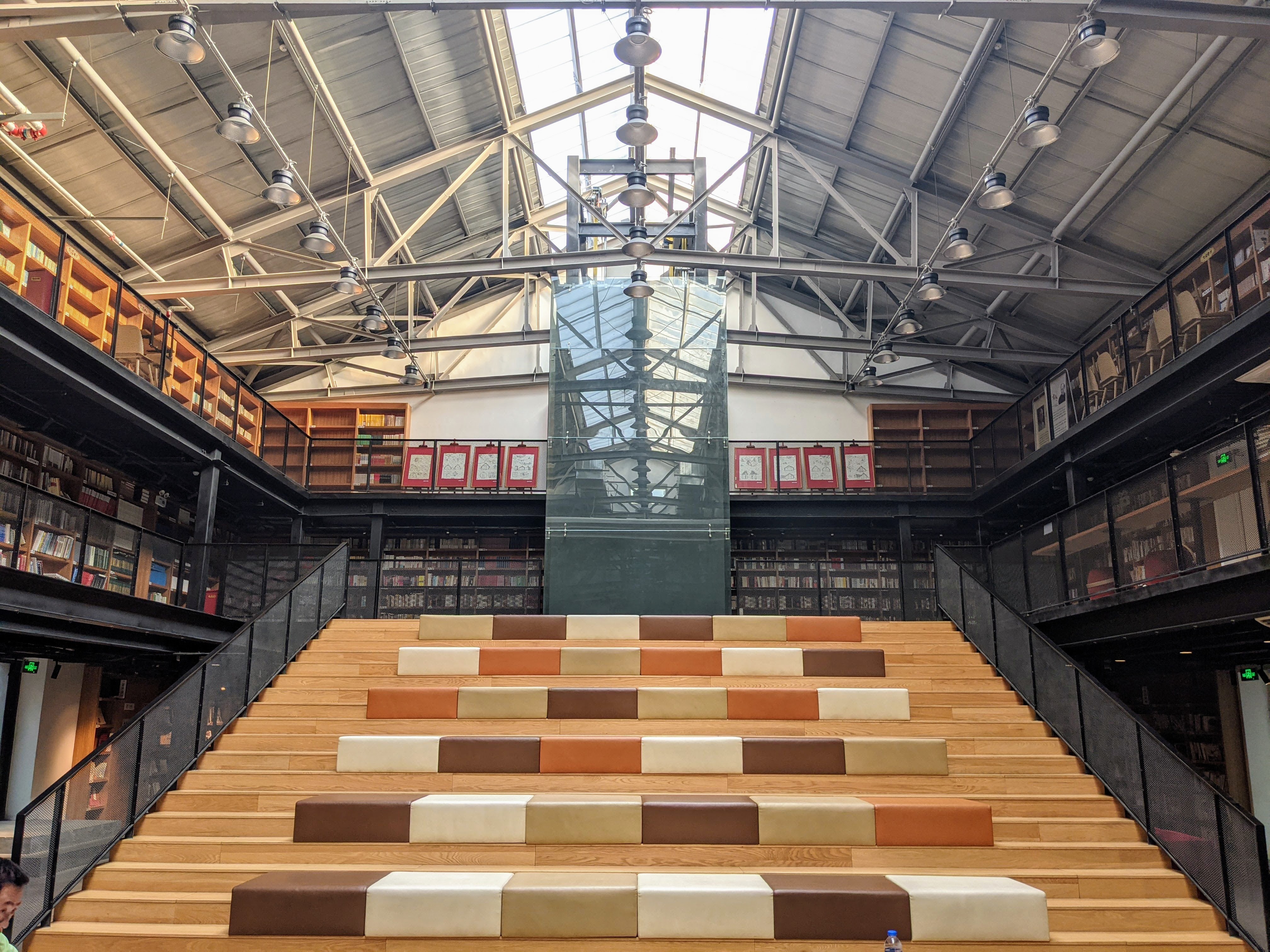 밑에서 위로 본 모습. 카페나 서점 가면 많이 보이는 소파가 설치된 계단인데 아마 영화관 시절에 관람석으로 사용했던곳인듯.
